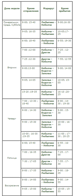 | Расписание движения автобусов по посёлку Неболчи. https://lubitino.ru:443/forum/viewtopic.php?f=22&t=70018 |