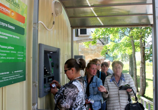 На сегодняшнем заседании правительства Новгородской области Галина Михайлова показала фотографии, на которых большие очереди в тесных помещениях к банкоматам «Сбербанка» в районе. Отделение банка работает там только до 17.00 с перерывом на обед, выходные — суббота, воскресенье.